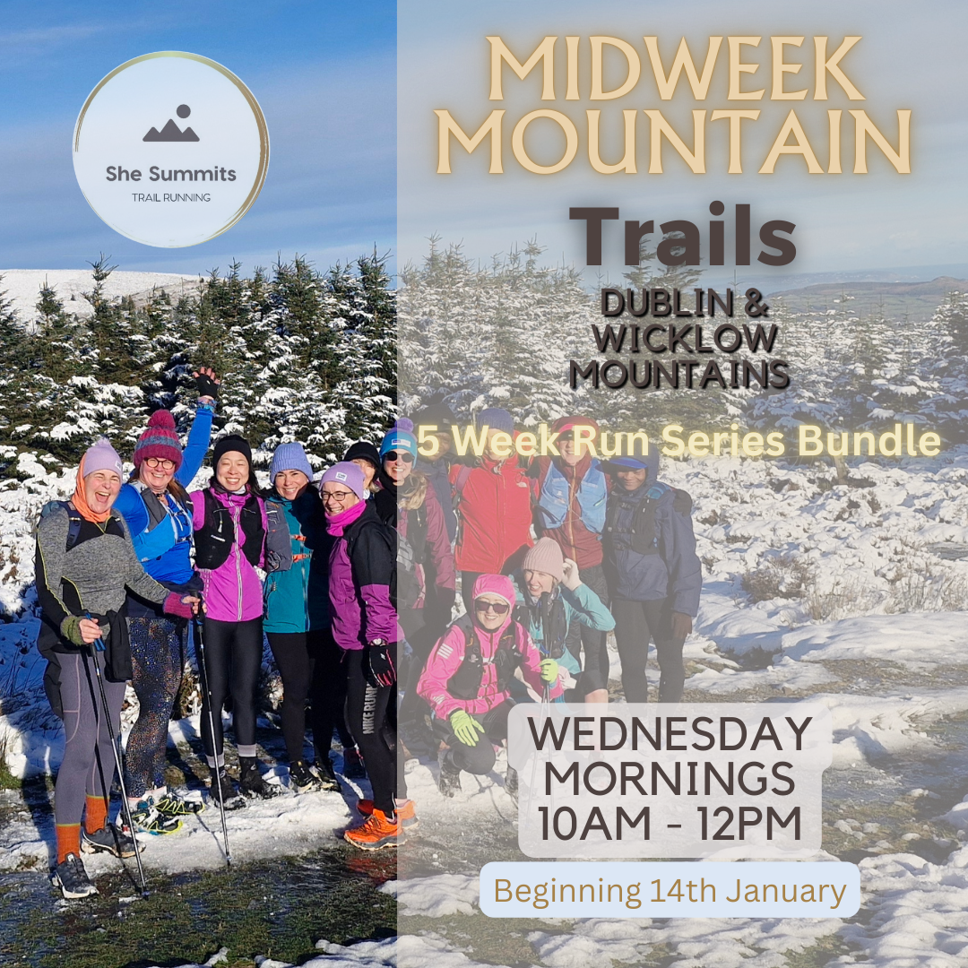 Store Series Bundle - Midweek Mountain Trails - January to February €60.00 Single Ticket - Frost & Trails - 17th January - Long Saturday Run €30.00 Single Ticket - Frost & Trails - 31st January - Long Saturday Run €30.00 SIngle Ticket - Frost & Trails - 28th February - Long Saturday Run €30.00 Series Bundle - Frost & Trails - Long Saturday Runs €75.00 Series Bundle - Sunday Beginner Trail Run Series - Starting January 2026 €60.00 Single Run Ticket - Sunday Beginnner Trail Run Series €16.00 Single Run Ticket - Midweek Mountain Trails €16.00